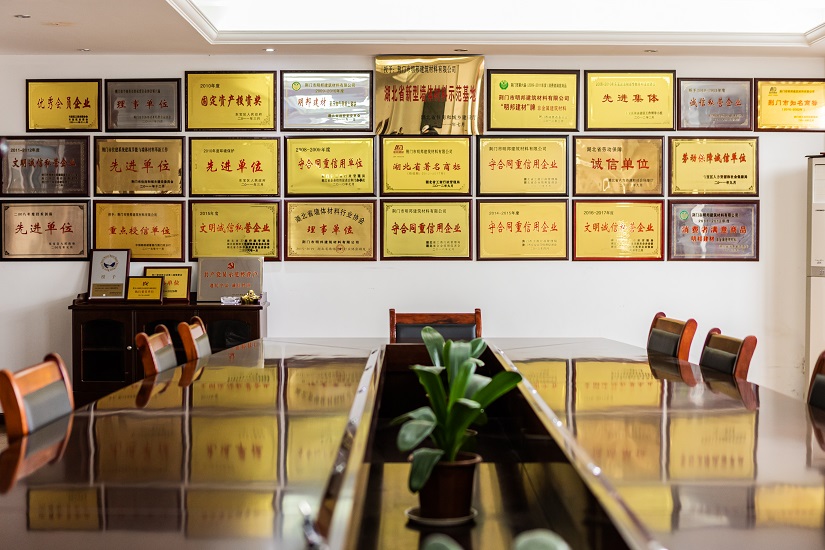 “明邦”商標(biāo)被認(rèn)定為“湖北省著名商標(biāo)”,同時(shí)被評(píng)定為“湖北名牌”產(chǎn)品,企業(yè)同時(shí)被評(píng)定為“湖北省重合同守信用企業(yè)”、“湖北省新型墻材產(chǎn)業(yè)化示范基地”和“荊門(mén)市循環(huán)經(jīng)濟(jì)示范企業(yè)”,公司通過(guò)了“綠色建材評(píng)價(jià)標(biāo)識(shí)證書(shū)”、“GB/T 45001-2020職業(yè)健康安全管理體系認(rèn)證證書(shū)”、“GB/T 19001-2016質(zhì)量管理體系認(rèn)證”、“GB/T 24001-2016環(huán)境管理體系認(rèn)證證書(shū)”。